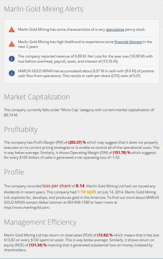 Learn more about Marlin Gold Mining Ltd at Macroaxis: