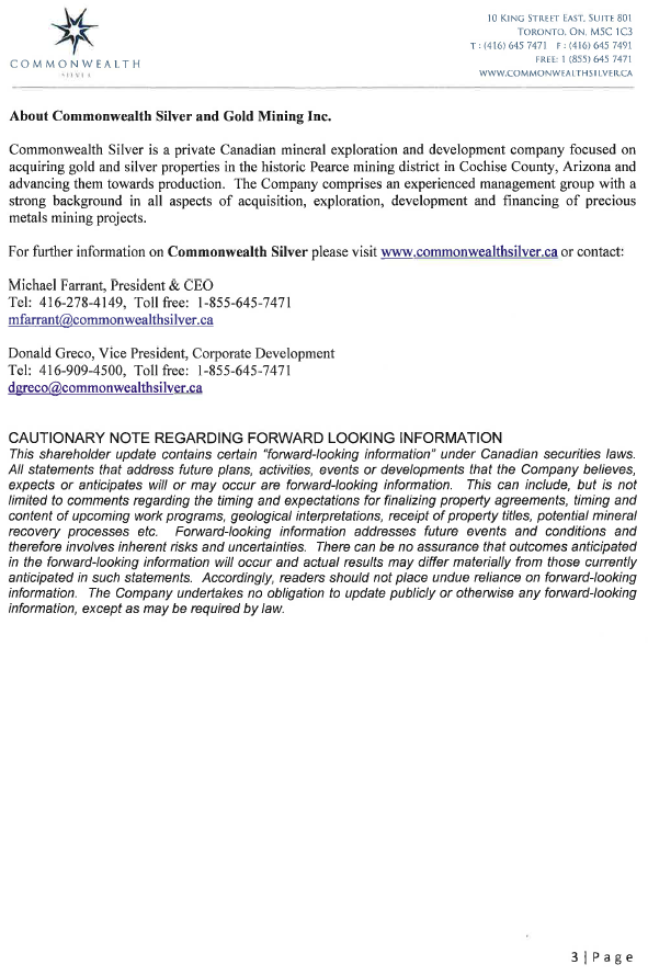 Message to Shareholders – As per Commonwealth Silver, Canada